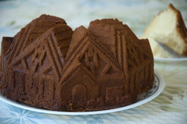 StumbleUpon showed me a recipe from Martha Stewart’s “Everyday Food” magazine (it’s a magazine? right?) the other day. It was for pound cake. I had been meaning to make a pound cake, because I have this fancy cake pan that only likes to make pound cake, and I never make any, so if I don’t start using it on a regular basis I’ll find it difficult to justify keeping it because it takes up rather a large area of our cupboard, being a whole gigantic bundt cake shaped like a house, or really a whole street lined with houses, if they made residential streets in a round orientation with a hole in the middle which I’m not sure they do but they should give it a shot because as you can see, it would be adorable.