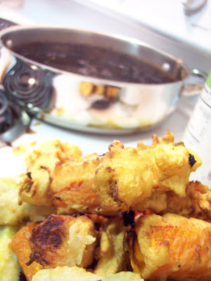 Then the breading stayed on the vegetables, and the vegetables started to get soft, but the batter-glue from the previous attempts had turned the oil black and the new vegetables overbrowned. Then we ran out of batter.