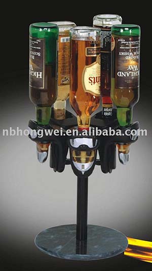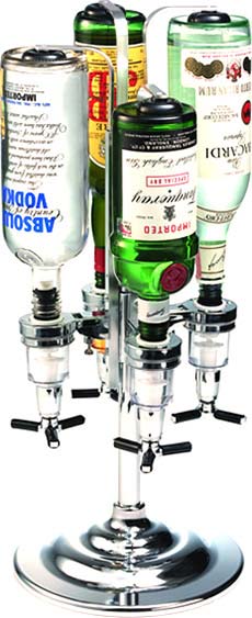 What we call a bar is actually just a little cabinet in the corner of the dining room. On it sits a six-bottle liquor dispenser (like this one available on Amazon) that we value very highly. It holds all our bottles up for convenient access, dispenses tidy 1.5-oz pours, and looks cool. I don’t know what else we could ask from it, given its purpose and price tag. I mean, no, it doesn’t mow the lawn or do the dishes. Unless you mean the lawn of your sobriety, or the dishes of your own potential clumsiness. I don’t know what I’m saying.