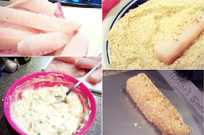 - Make sure the fish is dry (paper towel if you need to). Roll each piece in the margarine/mustard mixture, then coat it in the bread crumb mixture, and lay it out on a teflon- or oil-coated baking sheet. Place it into the oven and cook 8–10 minutes on each side, or until flaky and lightly crisp.
