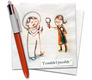 Me, I’m not cutting back portions because of dieting. I could stand to lose 10 or 15 pounds, but I’m not working hard to make it happen, and I don’t beat myself up about it. I figure if I keep trying to live better, it’ll happen naturally, and that’s when I’ll know I’m on the right track. In the meantime, I know I’m not fat—which feels crazy to say, because now I’m wide open to criticism that my ego doesn’t need to hear. (Did you see on Kristina’s blog where she said she’s not fat? Omg denial.) But I’m trying to be honest and objective. For a 28-year-old graphic designer who doesn’t exercise and loves to cook, I feel pretty good and I think I look okay.