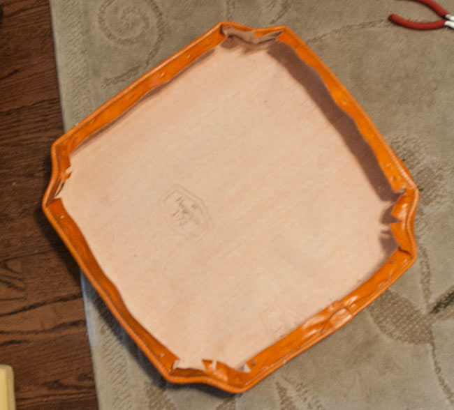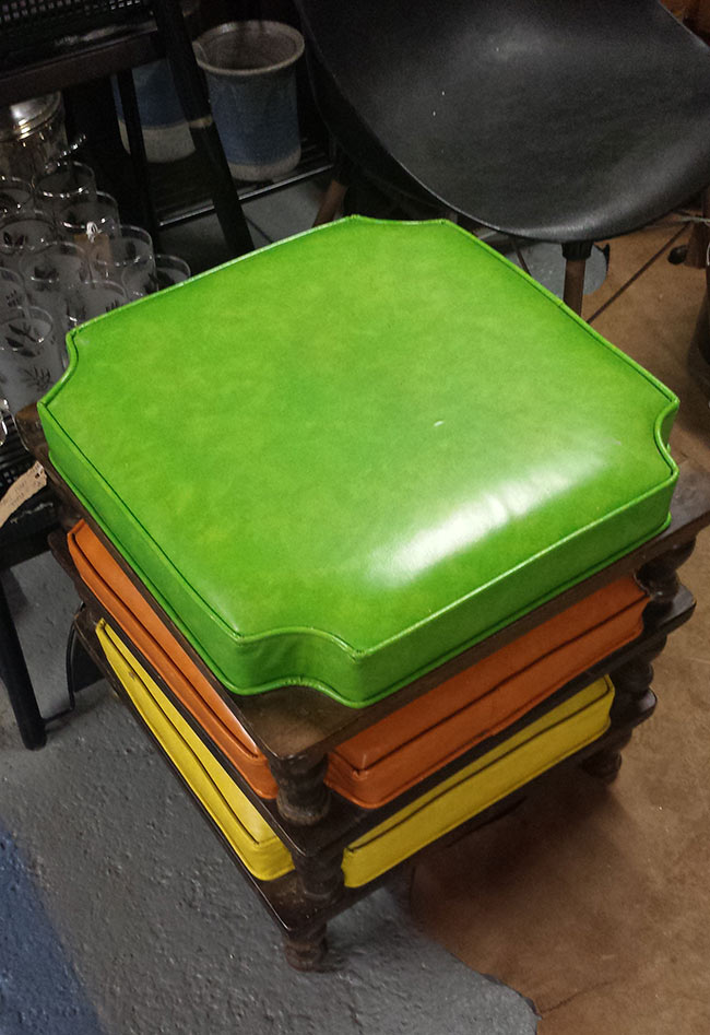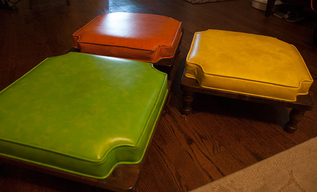 So in the end, what I had was not just a feeling, not just two feelings, but a project: restoring these vintage Ethan Allen stacking stools, with all their scratches and paint stains and ripped-up Naugahyde, into something our non-citrus-colored living room would be happy to have.