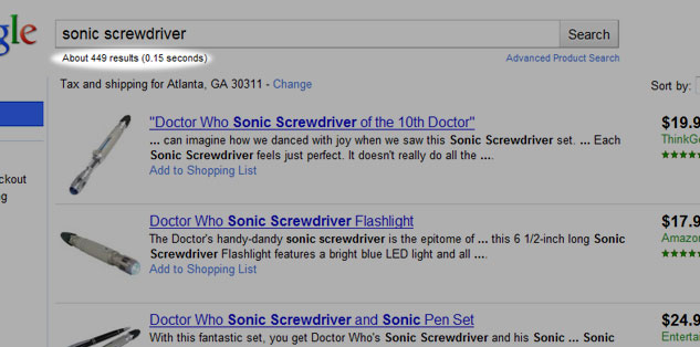 But it wasn’t a flashlight. So just to make sure I wasn’t missing an even better third option, I googled “Eleventh Doctor sonic screwdriver flashlight” and wound up at Amazon. I noticed there were actually quite a lot of sonic screwdrivers listed under “related items.” And that’s when it finally hit me.