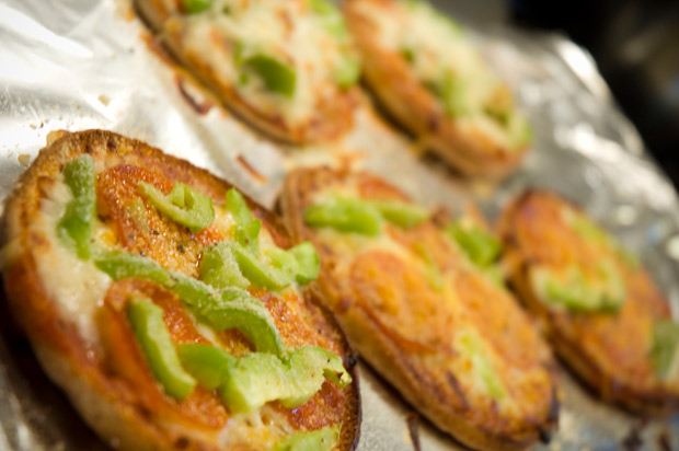At any rate, somewhere between the mouthwatering, passion-igniting pizzas of the mythical 1960s and the quick-cooking particle board cheese squares of my youth lies this super-convenient, tasty-as-you-want-it-to-be pizza snack. It’s super convenient because it’s just sauce and cheese on bread, but it’s also delicious for the same reason. It could be great for kids, but what the hell do I know—kids didn’t make sense to me even when I was one.