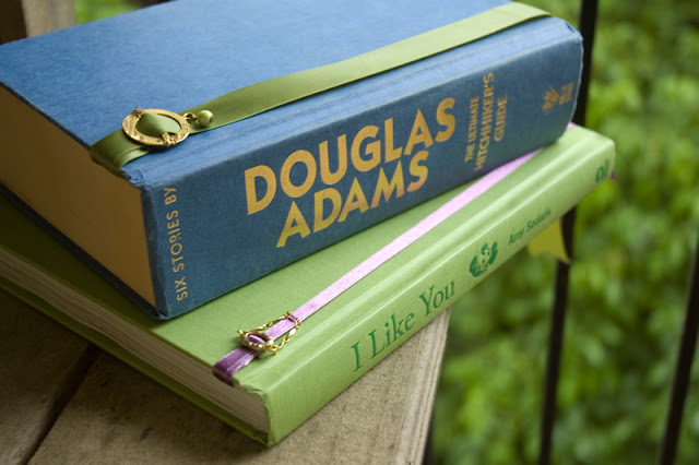 Since it’s so quick to make, doing one for every book on your shelf may actually start to sound like a good idea. When you run out of books, you might even want to start making little ribbon straps for other things in your house, too, like your toothbrush or your microwave. I hope you don’t do that, since it will mean you’ve lost your mind. But if you do make a bookmark for your microwave, please be sure to use a plastic slide and not a metal one. Safety first!